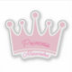 This delightful contour-cut sticker features a charming pink crown adorned with the word “Princess” in elegant script. Below the crown, a customizable name is displayed in the same dark pink stylized font. The design exudes a playful yet regal aesthetic, making it perfect for young girls who dream of fairy tales and princesses. However, it also appeals to adults who embrace their inner royalty, whether they see themselves as Queens or Divas.