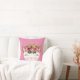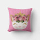 Pink girl's pink on pink striped throw pillow with graphics of a cute round white kitty face complete with pink heart shaped nose, big golden eye lashes, golden glitter looking ears and pink flowers on it's head. Customize to add your own text. Cute gift idea for any age girl or cat lover. Matching products are available.