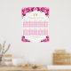 This elegant and glamourous Quinceañera table seating chart features a gold crown and beautiful hot pink floral arrangements with gold confetti. The text combines handwritten script and modern sans serif fonts for a classy and sophisticated look.