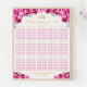 This elegant and glamourous Quinceañera table seating chart features a gold crown and beautiful hot pink floral arrangements with gold confetti. The text combines handwritten script and modern sans serif fonts for a classy and sophisticated look.