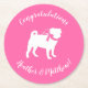 Pink Pug Dog Theme Party Celebration Round Paper Coaster