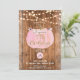 Pink Pumpkin Fall Rustic Wood Lights 7th Birthday Invitation