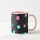 Black background with purple, pink and blue polka dots seamless repeat pattern design