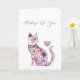 Pink Purple Blush Floral Heart Cat Thinking of you Card