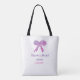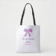 Pink purple bow sparkle glitter bridal shower name tote bag