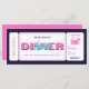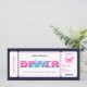 Pink Purple Dinner Date Gift Voucher Ticket. A fun and colourful design featuring an old-school boarding pass with a pink romantic dinner setup and bold pink typography on a deep purple background. This gift voucher is the perfect gift for a dinner date with your girlfriend, bestie, spouse, mother, grandmother, etc. Just add the restaurant name, date, and any other specifics for the dinner and you're all set.