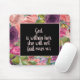 Pink and purple watercolor floral and black mousepad with with Christian Bible verse Psalm 46:5 "God is within her, she will not fail."