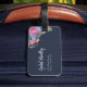 Dark blue floral luggage tag with flower arrangements in orange, pink, purple, and blue. Add your name and initial.