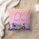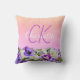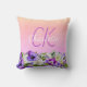 Pink purple flowers name monogram script throw pillow