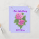 Coloured pencil design of pink and purple geraniums with green leaves, with placeholders for wedding info, is printed on two sided invitations. The details are easy to customize on the template forms. The background colour of lavender can also be customized. Thank you for shopping at CherylsArt on Zazzle.