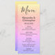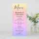 Gold, Pink and Purple Rainbow Pastel Ombre Glitter and Sparkle Wedding Menu. This girly modern Script Wedding Menu can be customized to include the names of the Bride and Groom, the wedding date and the wedding dinner menu options.