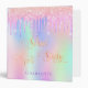 Pink purple glitter drips holographic school binder