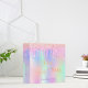 A trendy holographic coloured background with unicorn and rainbow pastel colours in pink, purple, rose gold, mint green. Decorated with faux glitter drips in rose gold, pink and purple. Personalize and add a name. Golden text: School, work, study