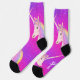 Unicorn lovers will adore these Pink Purple Glitter Unicorn Rainbow Socks. This trendy design has a pink and purple faux glitter background and three pretty white unicorn faces on each sock. The unicorn has light shades of pink, purple, blue and yellow rainbow hair and flowers on top of her head. Customized with the word "Dream" in white calligraphy script lettering on the bottom of each sock.