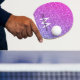Girly purple to pink ombre glitter texture background with a trendy font modern monogram with your name printed directly onto a ping pong paddle.