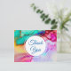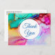 A party thank you postcard with a fancy artistic abstract design. Watercolor painting with the colours mixing and mingling creating a nice flowing marbled pattern.