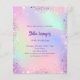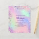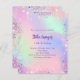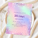 A girly and feminine 18th (or any age) birthday party invitation. On front: A holographic coloured background in purple, pink, mint green. Decorated with pink and purple faux glitter. Personalize and add a name and party details. The name is written with a hand lettered style script, purple coloured letters.