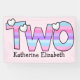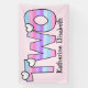 Celebrate a lovely Second Birthday with this sweet design! Features a soft pink background and the words 'TWO' in stripes of pink, purple, and blue. This design is easy to match with decorations making for a perfect birthday party celebration! Clipart used by CaperuzaSketch.