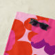 Beach towel Popflower motif bright pink, purple on pale pink background with your first name. Editable text.