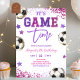 Pink Purple Sequin Soccer Girl Birthday Invitation, It's Game Time Girl Birthday Invite, Editable Sports Kids Birthday Party