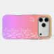 This is one of the cuttest and cleanest phone cases i ever created! and I am absolutely thrilled about this Blush Leaf pattern print over an elegant pink puplre and yellow pastel colour palette gradient iPhone Case, that allowes you tocustom it with your own name and monogram initials using a retro script typography ! There is nothing more exciting than having a personalized accessory that reflects my unique style and personality. The combination of the elegant blush pink colour and the intricate leaf pattern in blue creates such a visually stunning design. And let's not forget about the script typography, which adds a touch of sophistication and class. This is truly a one-of-a-kind masterpiece that will make heads turn wherever I go. I cannot wait to showcase my creativity and individuality with this exquisite phone case!