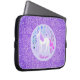 This laptop sleeve features a cute unicorn design with purple glitter. Personalize it with a name.