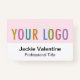 Personalize our professional PVC name badge with your company logo, employee name, job title, or other custom text. It's made of durable PVC plastic. Designed in light pink and other colours with a modern minimalist design by MISOOK. All colours are customizable. Available with a lanyard, metal clip, or retractable reel. The dimensions are 3.38 inch x 2.13 inch. No minimum order quantity and no setup fee.
