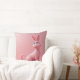 A bright pink cushion with a pink rabbit engraved on it.