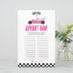This is a Pink Race Car Alphabet Game Baby Shower Game.