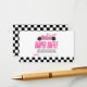 This is a Pink Race Car Chequered Race Flag Baby Shower Diaper Raffle Enclosure Card!