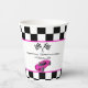 These paper cups feature a black and white chequered flag and pink race car theme. Font styles, colours and more can easily be changed by clicking "edit design" or "customize further". There are also matching party invitations, address labels and more here in my store on Zazzle. Please stop in and take a look around. Be sure to follow me for new product updates! Thank you for your interest in SapphireDesigns!