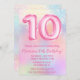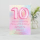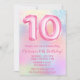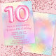 Pink Rainbow 10th Birthday Invitation Girly Pink Glitter birthday party invitation for a 10 year old girl with modern script writing and fun foil balloons.
