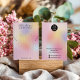 This jewelry display card features a soft pink rainbow holographic background with a smooth, modern gradient that gives a luminous, high-end look. Designed to hold necklaces and earrings, it offers a clean layout with space for branding, logo, and contact details on the back. Ideal for showcasing handmade or boutique jewelry while keeping packaging cohesive, stylish, and professional. No Holes are punched.