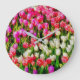 Pink Red and White Tulips from Mt Vernon Large Clock