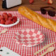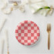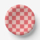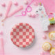 Pink Red Chequered Gingham Pattern Paper Plate