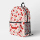Presenting a cute and fashionable backpack that stands out with its vibrant cherry and daisy print in pink, red and white hues. This striking accessory not only serves as a bold fashion statement but also offers the unique opportunity for personalization, allowing you to add your name for a truly individual touch. Perfectly designed for school, work, or casual outings, this stylish backpack harmoniously blends practicality and playfulness, ensuring your essentials are both organized and easily accessible while showcasing your distinct style.