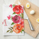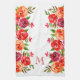 Pink Red Orange Flowers Monogrammed Kitchen Towel