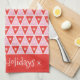 A stylish and fun Christmas Kitchen towel design with retro-inspired geometric triangles. This fun Christmas gift can personalized with a name, phrase, monogram or your own message. Colours include; green, red, white, blue and pink.