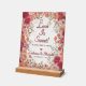 Add a charming finishing touch to your dessert table with this romantic pink and red watercolor floral wedding sign. Framed in lush blush pink, dusty rose, wine red, and warm sunset blooms, the design captures the beauty of a vintage spring garden with a soft, old-world feel. The floral border draws the eye inward, making your message stand out while blending effortlessly with an elegant reception setting.