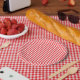 Pink Red Galentine's Party Plates trendy stripes.