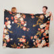 PINK RED WHITE SPRING FLOWERS , DEEP BLUE FLORAL FLEECE BLANKET
