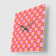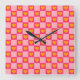 Pink Red Yellow Heart Love Chequered Y2K Pattern Square Wall Clock