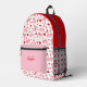 Embrace the "Cherry Core" trend with this darling personalized backpack! Featuring a whimsical pattern of red cherries, delicate pink bows, and scattered hearts, this bag is the ultimate accessory for the fashion-forward girl. The side panels boast a classic pink and red chequerboard pattern, adding a bold retro twist to the soft, feminine design.