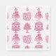 Pink Retro Heart Coquette Cherry Cake Valentines Napkin