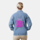 This Denim Jacket features a cool, trendy retro pattern in various shades of pink with custom text "Bride". The retro circles are set on a pink background with heart pattern. Great jacket for every woman!