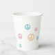 Two Groovy Retro Style Birthday party cups with peace signs in pink, turquoise and yellow.