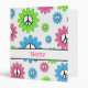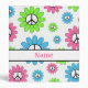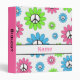 This retro back to school binder has a white, aqua blue and pink peace sign pattern and the name, subject or text of your choice.