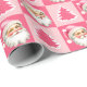 Pink Retro Santa Claus Christmas Tree Tartan Plaid Wrapping Paper