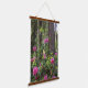 Decorate your living space with this vertical, hanging wall tapestry with wooden tops that features a photographic image of blooming, pink Rhododendron shrubs in a forest setting. A lovely, floral design!