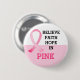 Pink Ribbon Breast Cancer Awareness button features short inspiring text template on pink ribbon .A perfect design to support & create awareness for breast cancer.Please click on personalize button to customize it with your text.